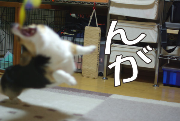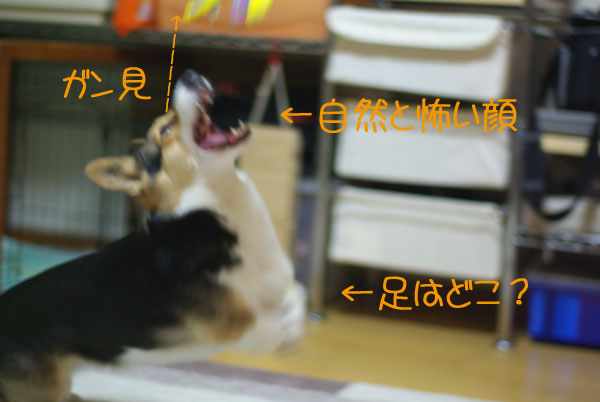 投げらると同時に、まっすぐ見据えてジャンプ(やたら顔が怖いです)