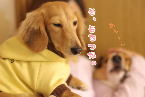 「いやいや、おとうワンの為に布団を暖めていたんデスよ!」と