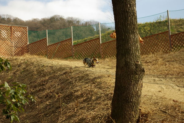 初花さんはドッグランに解き放つと、「地平線の彼方まで千本ダッシュだ!!」なんてやる気のある犬ではないです。