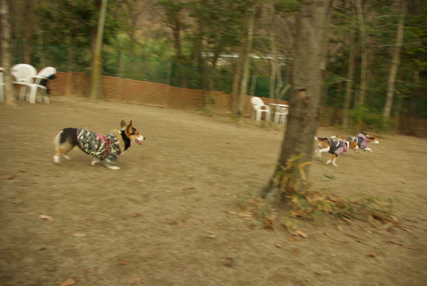 稲荷山ドッグランにていつに無くアグレッシブな運動をしていた初花の元へ三匹の茶色い三連星がやってきてくれました。