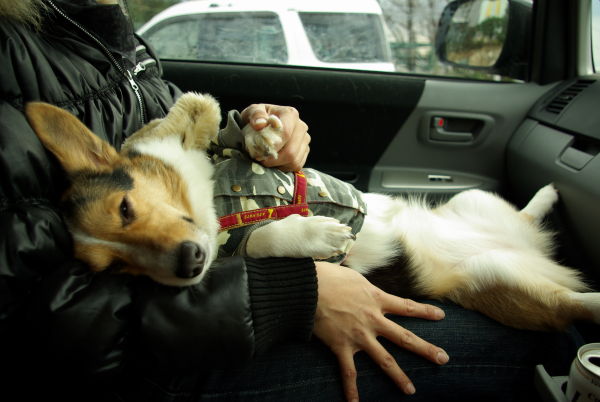 運動してグッタリと車の中で寛がれるお犬様を乗せて