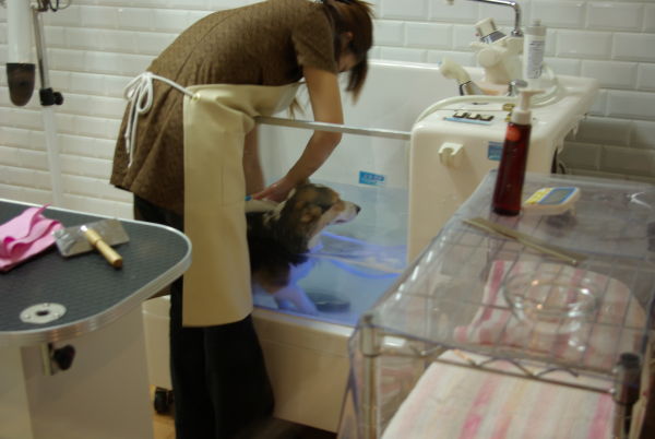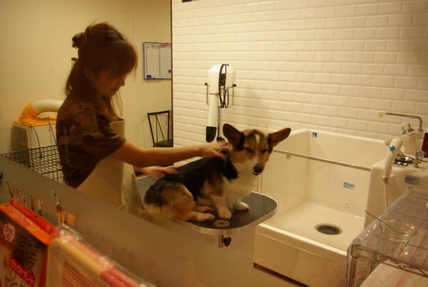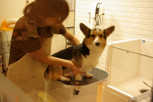 何室かある内の一つのトリミング室は、ショップ側からガラス越しで中を見れるので、