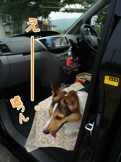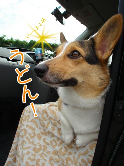 午前中の涼しさと、うどんだけを食べるだけの短時間の為、車中でお留守番。