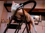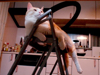 高い所にも手が届き、疲れた時は腰を休める優れもの、3段踏み台(上部は椅子)は、我が家の猫の憩いの場でもあります。