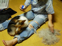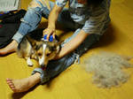 実際、上の毛(オーバーコート)は取れず下の毛(アンダーコート)がごっそり取れるので、黒い上毛が引き立って何だか更に黒々しい毛並みに・・・