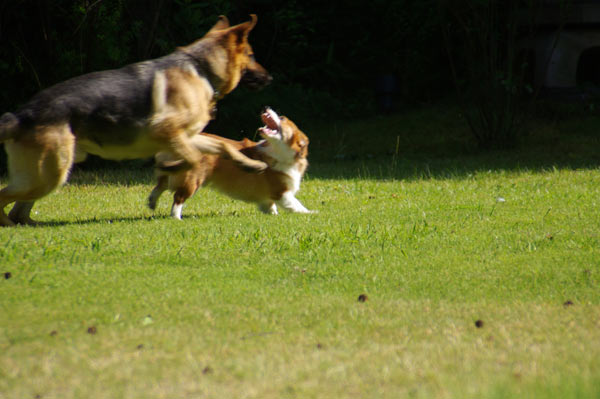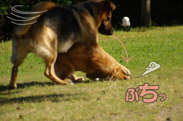 上司のお宅へ遊びに行った時に、喜びまくるシェパード♂2歳に狩られる輝己で