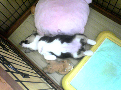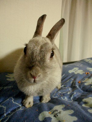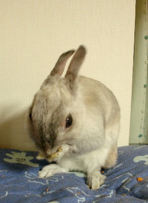 このうさぎさんは、「しな」さんとは別の、我が家のもう一人の同居人(HNはまだ無い)の飼いウサギさんで、初花の同居兎になる「るーな」さん。