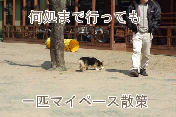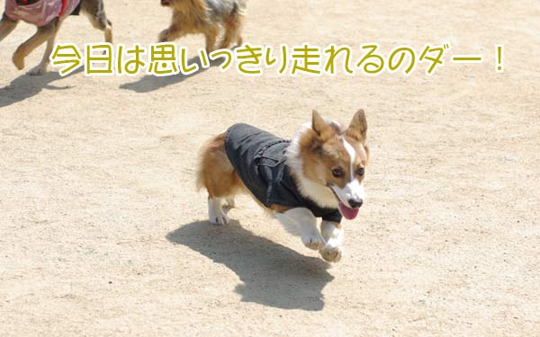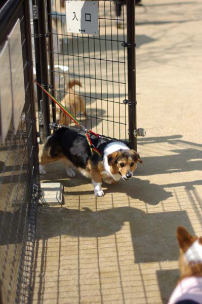 ドッグランへ放つと、できるだけ激しい子達が居ない場所へとフラフラしながら