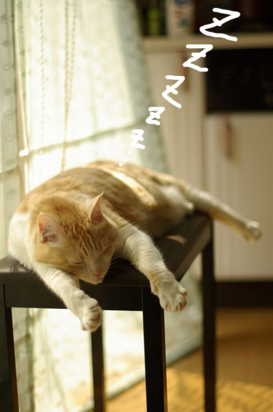 (そんな所で安定良く眠れるのは「さすが猫」?それとも「さすがどっしり腹肉」?)