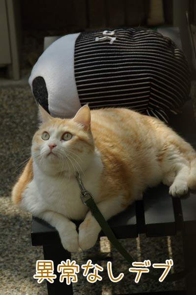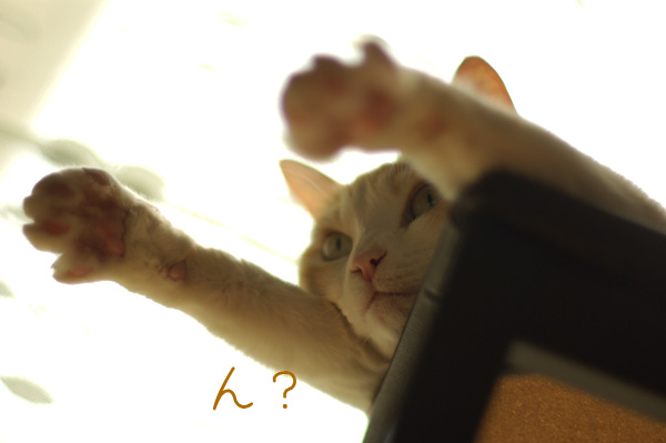 あらぬ方向を見て一声「ニャー」。