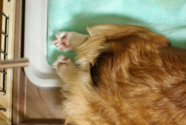 ゲージに押し込めてもスンとも鳴かぬまま熟睡する