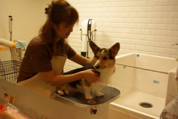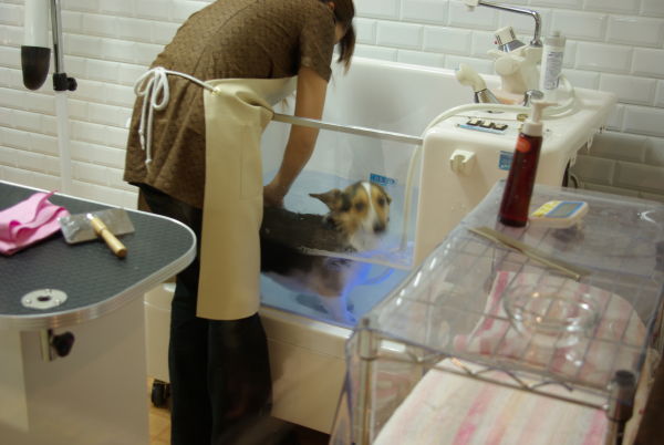 何室かある内の一つのトリミング室は、ショップ側からガラス越しで中を見れるので、