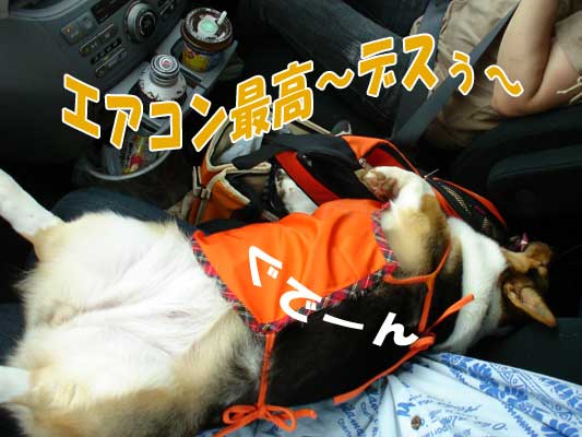 午前中の涼しさと、うどんだけを食べるだけの短時間の為、車中でお留守番。